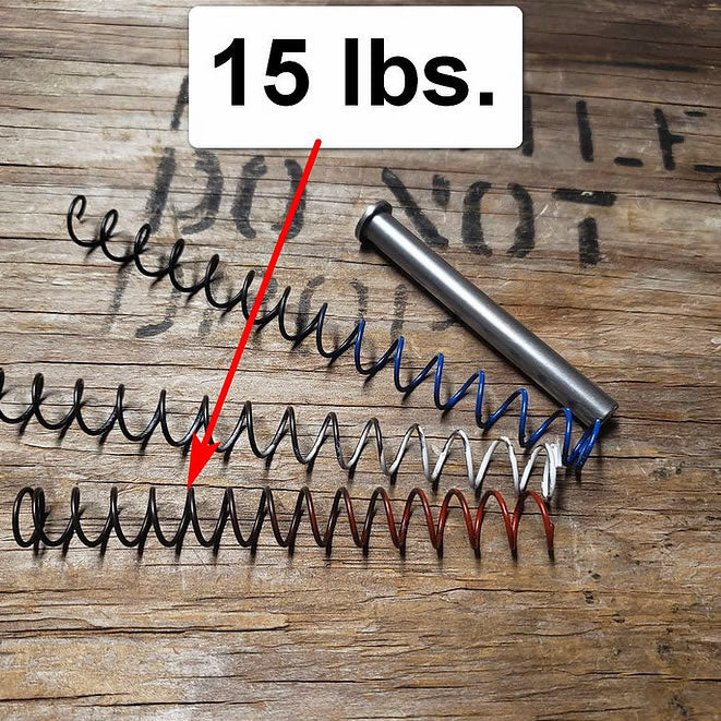 - Color coded 15, 16 and 17 lbs recoil springs for optimal tuning of recoil impulse with various types of ammunition.