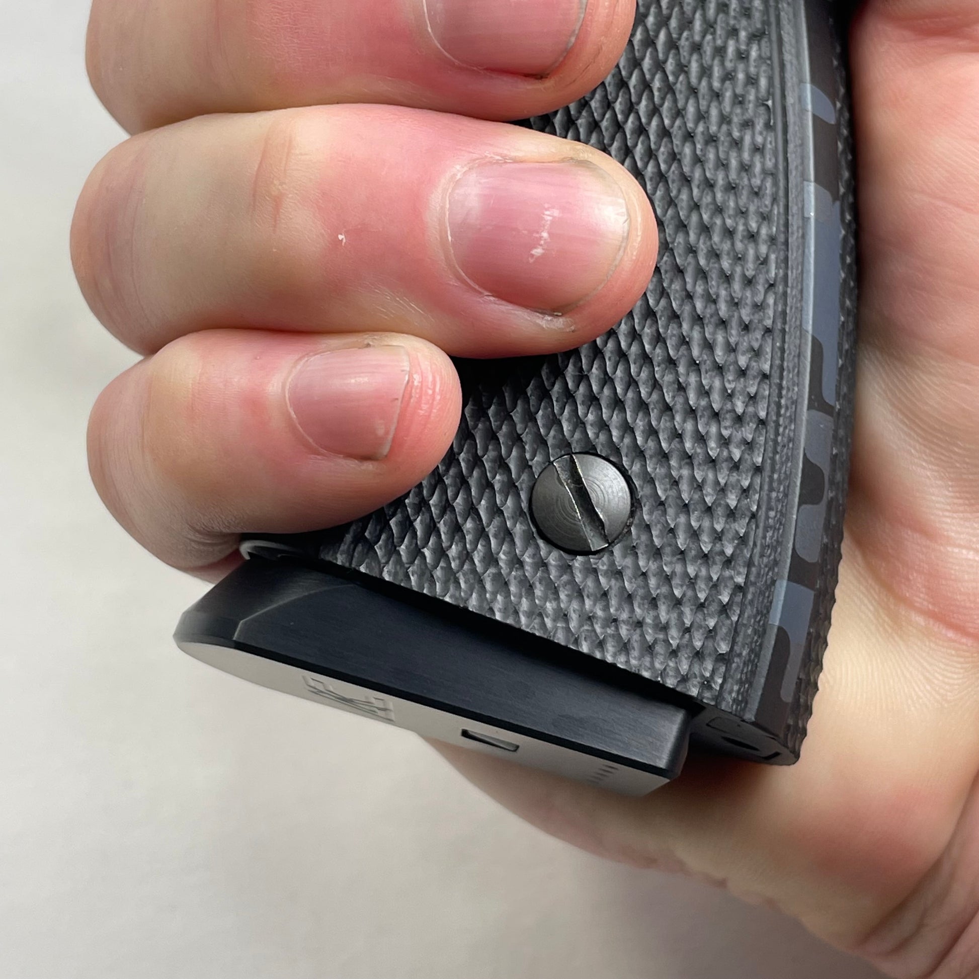 This base pad is a significant ergonomic improvement over the cheap, stock plastic 17 rd. magazine base pad that is 'tucked under the frame' and offers 'no support at all'.