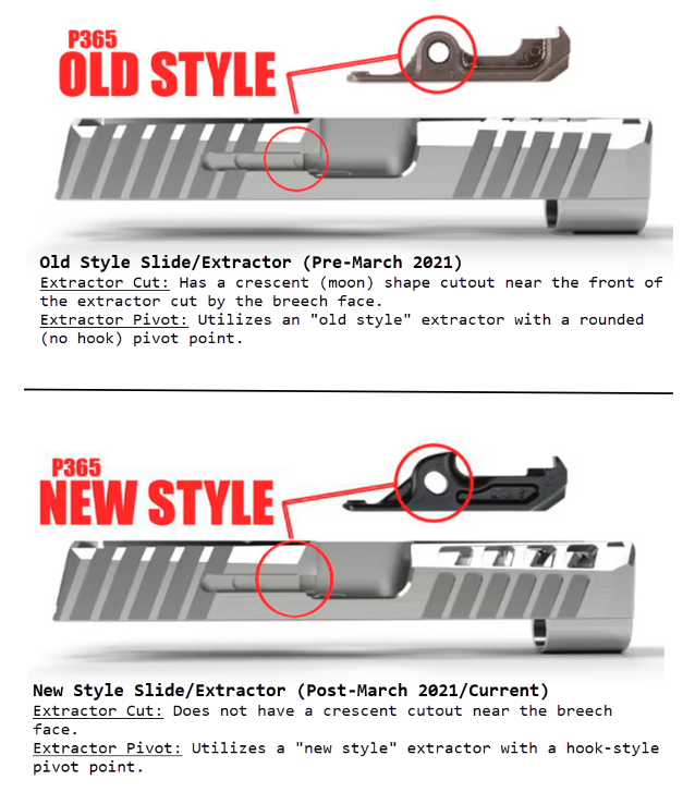 - Fits and Functions in all Sig P365 Models in both .380 and 9mm with New Style Slide produced after March 2021